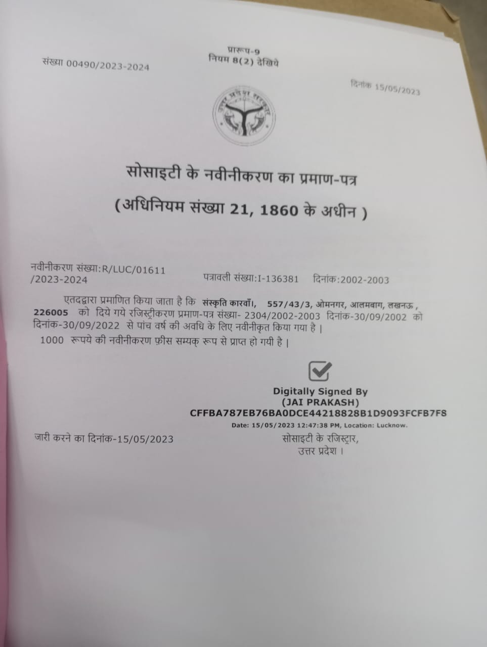 2513 UP-ART-6291 SANSKRITI KARWAN Lucknow Theatrical arts Other Grade
