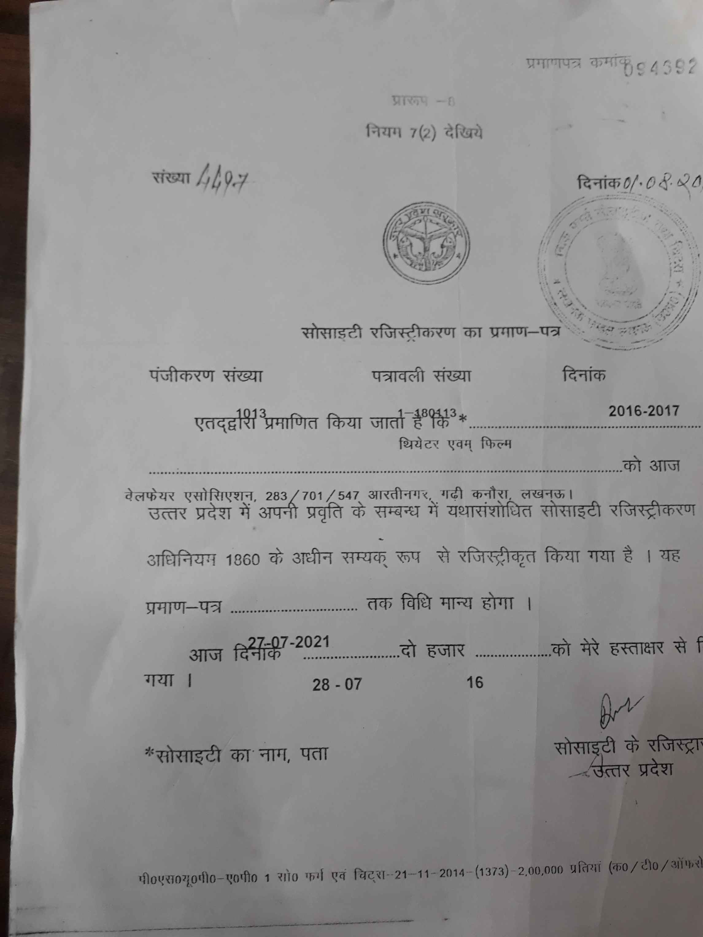 6695 UP-ART-408 Theatre Evam Film Welfare Association Theatrical arts Other Grade