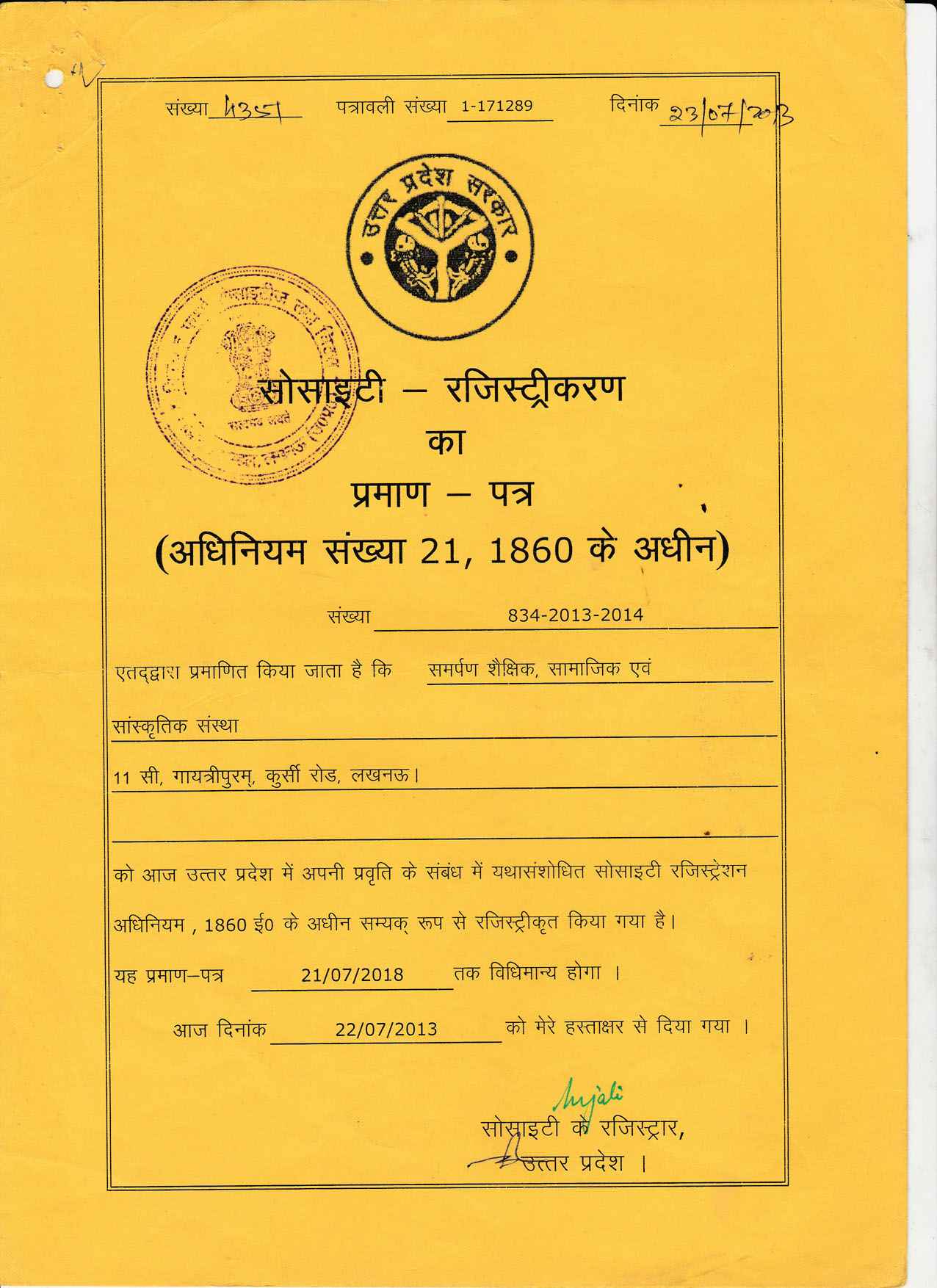 6742 UP-ART-355 समर्पण शैक्षिक , सामाजिक एवं सांस्कृतिक संस्था, लखनऊ नाट्य कला B ग्रेड